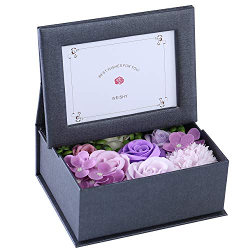 KIZAWA JAPAN 789 view ソープフラワー 写真立て フラワー フォトフレーム ボックス 写真入り 誕生日 プレゼント 母の日 敬老の日 結婚祝い ギフト 枯れない花 フラワーアレンジメント (パープル・黒フレーム)