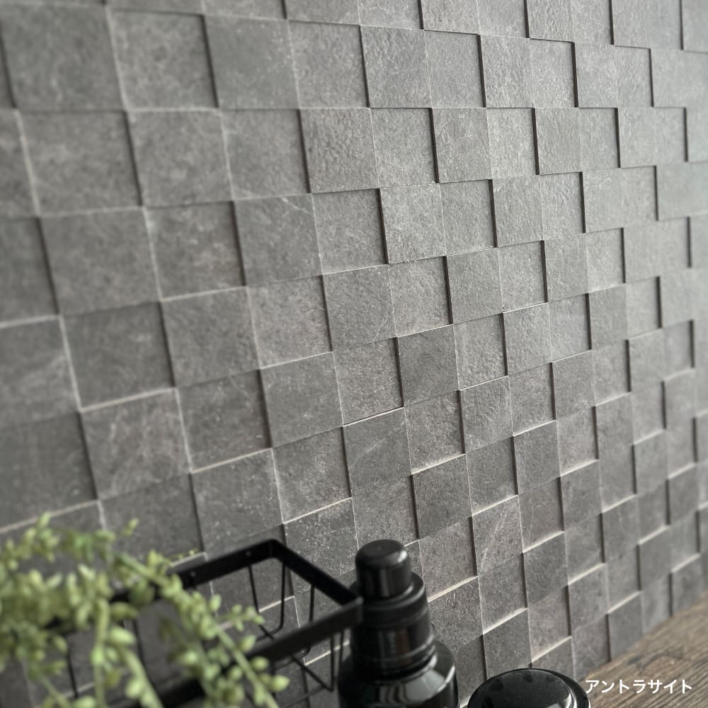 爆買 タイル 天然石 ストーン キッチンタイル 洗面 家づくり リノベ DIY 高級感 (バルレッタ2 アントラサイト シート販売)