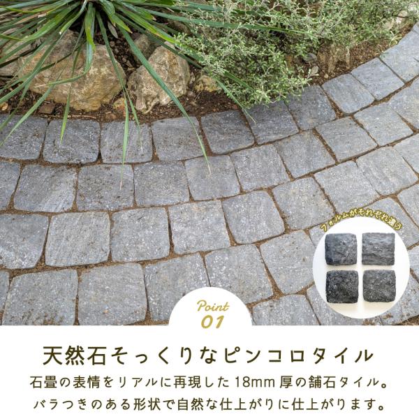 ピンコロタイル 88枚入 雑草対策 庭 置くだけ 軽い 薄い 簡単施工 舗石タイル 防草 石畳 石敷き DIY(ラグタイム・ネクスト 全4色 ケース販売 88枚入)