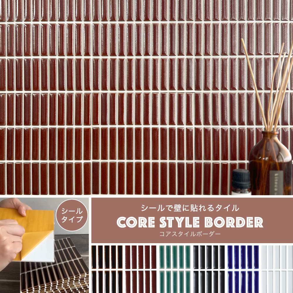 タイル キッチンタイル シールタイプ ボーダータイル 壁タイル 簡単DIY(シール コアスタイルボーダー 白目地 全色 シート販売)