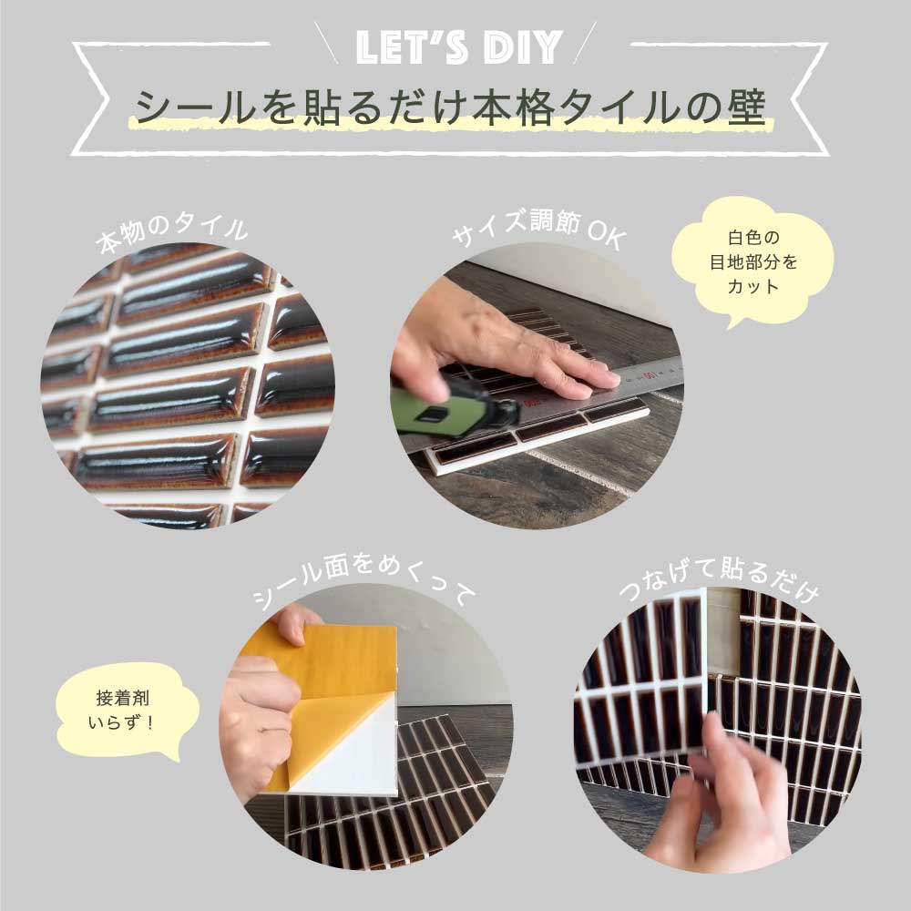本物の美濃焼タイルがシールで簡単に貼れる!