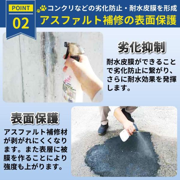補修後に吹き付けることで、表面に被膜を形成し、強度が向上。補修材が剥がれにくくなります。