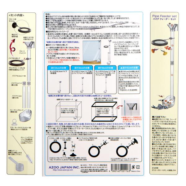 メーカー:AZOO アズー パイプフィーダーセット 4580163201163 20230910 y23m09 Y.K. Ishina 給餌 給餌器 淡水 海水 アクアリウム用品 アクア用品 水槽用品 便利 底生生物 セット コリドラス フィーダー オートフィーダー 沈下性 プレコ エビ シュリンプ 長期休暇 グッピー メダカ