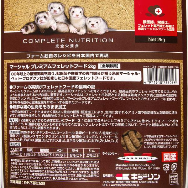 メーカー:マーシャル フェレットフード マーシャル プレミアムフェレットフード 2kg 4971618727053 小動物 小動物用品 フェレット MARSHALL プレミアムフード フード エサ 餌 ごはん ご飯 キョーリン 国産 鶏 鶏肉 チキン kak 20240318 y24m03 2601kyoanipre