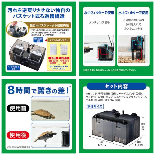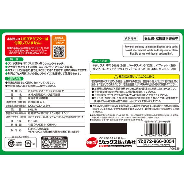メーカー:ジェックス GEX カメ元気 ダストキャッチフィルター 亀 かめ カメ 水棲亀 カメ用フィルター ろ過 水質 汚れ 投げ込み式フィルター ジェックス 水中フィルター 爬虫類 イモリ 水上フィルター イシガメ 水亀 ミドリガメ ゼニガメ 水槽 室内飼育 スッポン 4972547047267 20260219 y26m02 kak bnr2604gexnew
