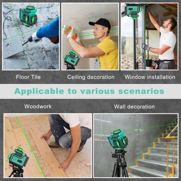Renkissy 4x360°レーザー墨出し器16ライングリーンレーザー 水平器自動補正 レーザーレベル 高輝度