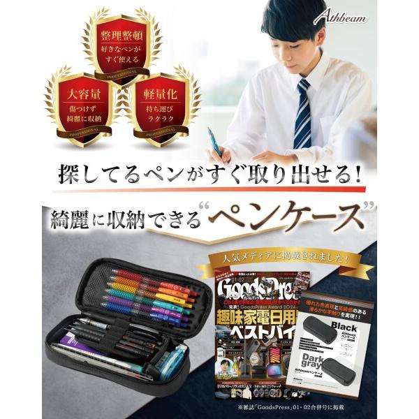 Athbeam ペンケース 筆箱 大容量 おしゃれ シンプル 子供 小学生 中学生 高校生 男の子 女の子 大学生 大人 多機能 コンパクト 使いやすい (ブラック)