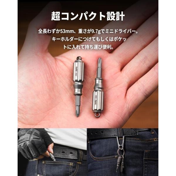KeyUnity ドライバー ミニ 差し替え式 KA53 ミニドライバー チタン マイナス&プラス ビット2本付 マグネット ポータブル キーホルダー edcツール ミニ修理工具 多機能 軽量 小型 携帯用 アウトドア