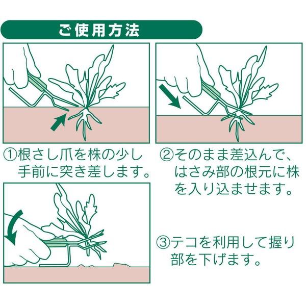 根の間に突きさしてテコの原理で抜く。花壇等の草むしりに最適