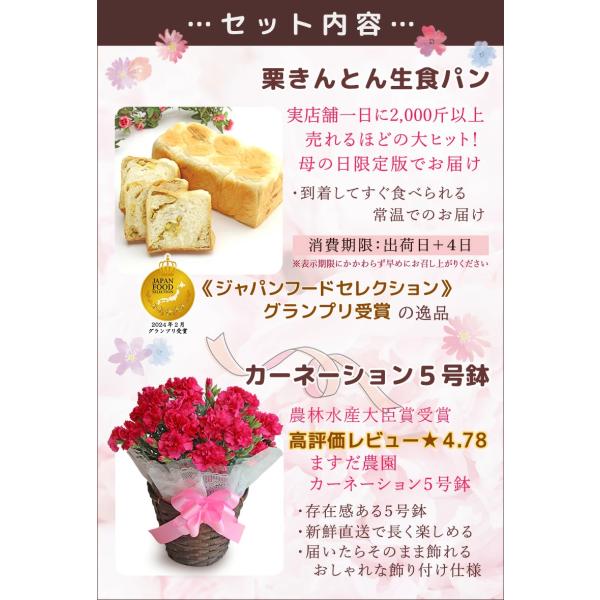 母の日 花とスイーツ 2026 花 カーネーション プレゼント ギフト 和菓子 栗きんとん 生食パン 中津川 ちこり村 贈り物 取り寄せ