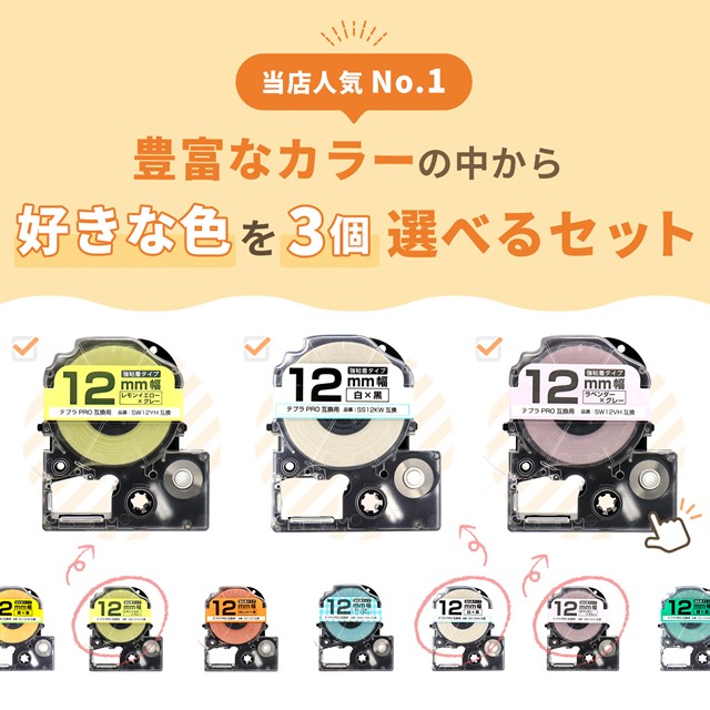 テプラ テープ 12mm テプラ pro テープ 互換 自由に3個色が選べる テプラプロ テプラPRO用互換 キングジム対応 12mm 互換テープ フリーチョイス