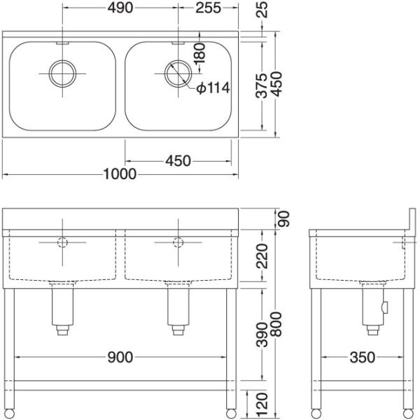 KP2-1000 東製作所 azuma アズマ 二槽シンク 2槽シンク W1000×D450×H800mm 業務用