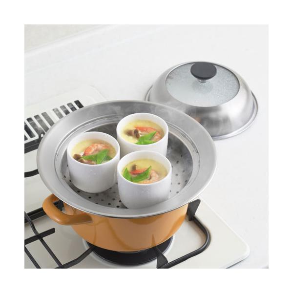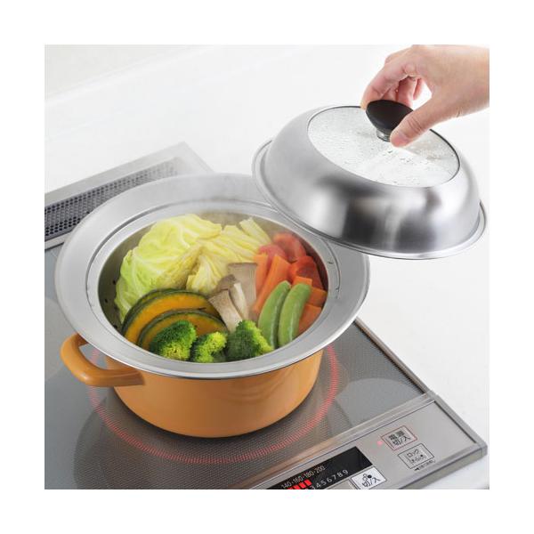 ヨシカワ 見える!お鍋用蒸し器 20~22cm用 YJ3626 蒸し器 蒸し調理器 セイロ ガラス蓋 中が見える 鍋用蒸し器