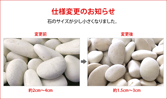 白い石のみです。形に個体差がありますが、約1.5cm〜3cmの小石です。