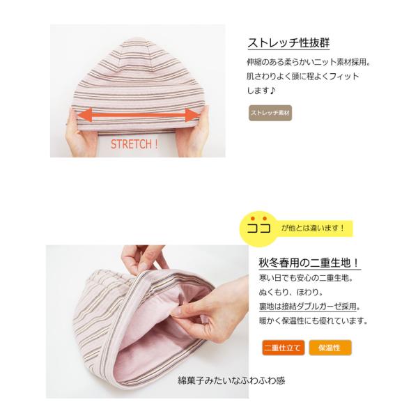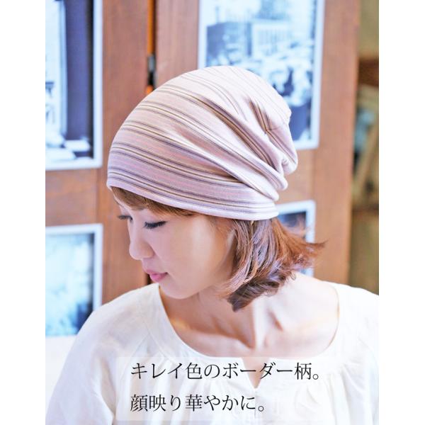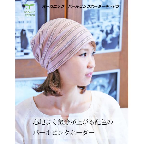 医療用帽子 【秋冬春】オーガニック パールピンクボーダーキャップ【日本製】【メール便送料無料】 抗がん剤帽子 脱毛 介護 白髪隠