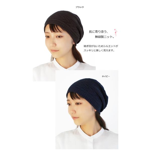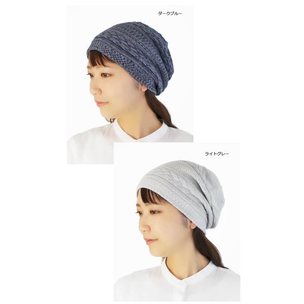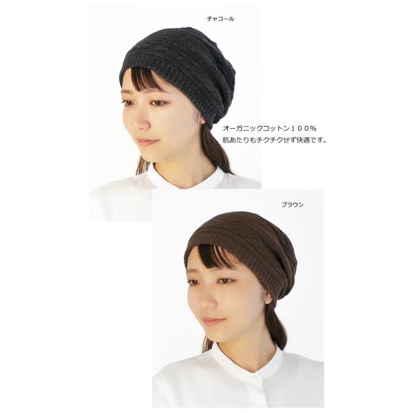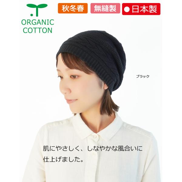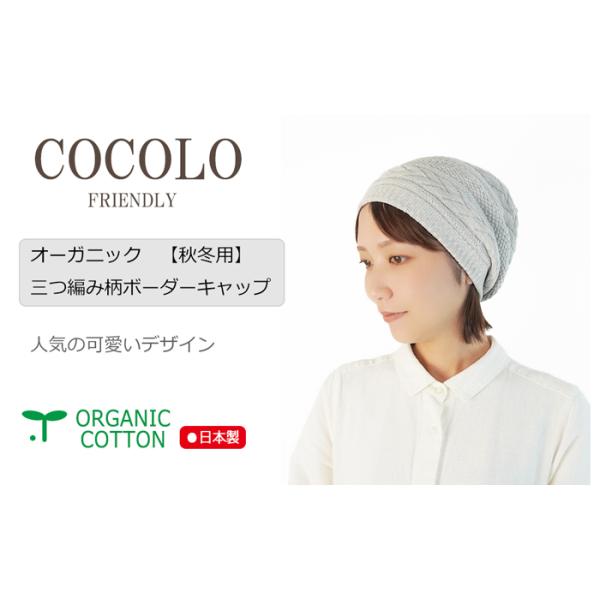 医療用帽子 オーガニック【秋冬仕様】★ 三つ編み柄ボーダーキャップ【無縫製】【メール便送料無料】 抗がん剤帽子 脱毛 介護 白髪隠
