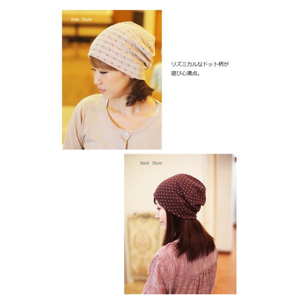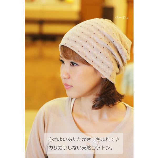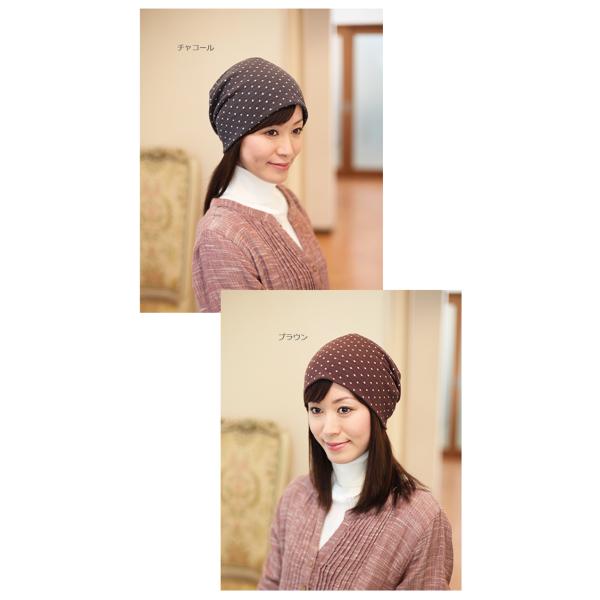 医療用帽子 秋冬用 ガーゼタオルダブルドットセミロングキャップ 日本製 レディース 抗がん剤副作用 脱毛 手術後用ケア帽子