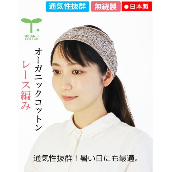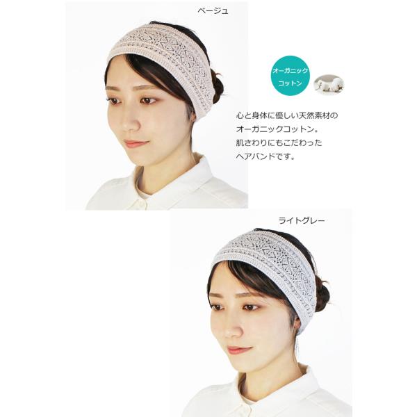 ヘアバンド オーガニック レース編み(無縫製)【日本製】【メール便送料無料】綿 コットン 敏感肌 アトピー 皮膚炎 お洒落 可愛い