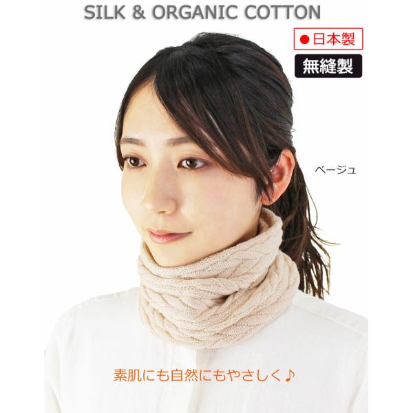 三つ編み柄 ネックウォーマー【シルク&オーガニックコットン】【日本製】【メール便送料無料】 レディース 女性