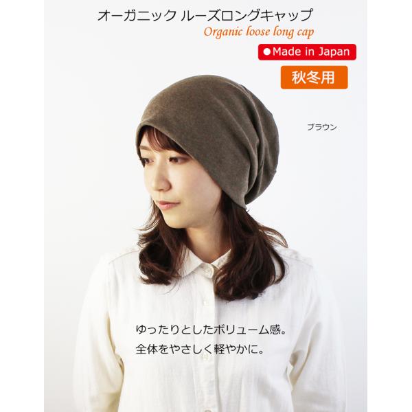 医療用帽子 秋冬用 オーガニック ルーズロングキャップ 日本製 メンズ レディース 抗がん剤副作用 脱毛 手術後用ケア帽子 薄毛 白髪隠し