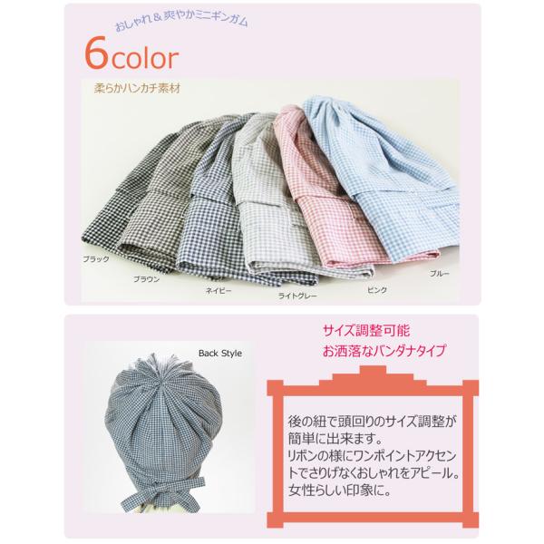 医療用バンダナ 春夏用 オーガニックミニギンガムケアキャップ 日本製 抗がん剤副作用 脱毛 手術後用ケア帽子