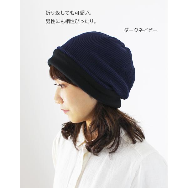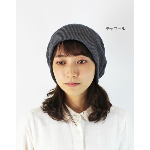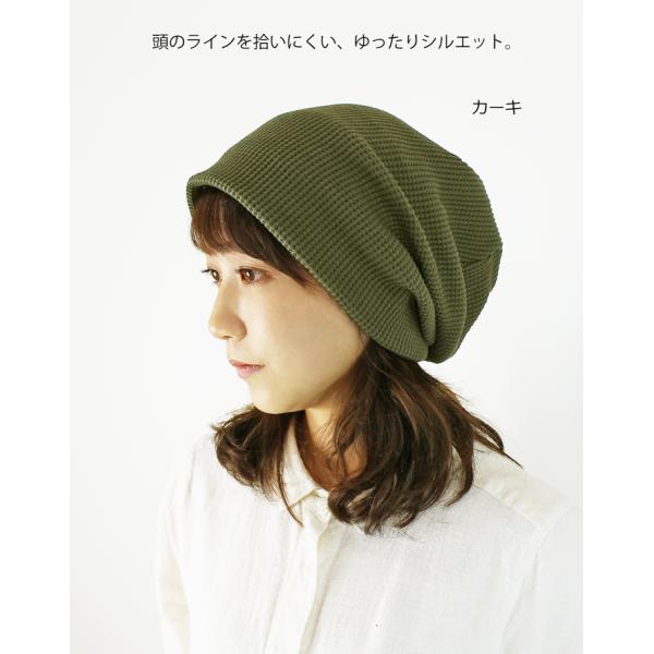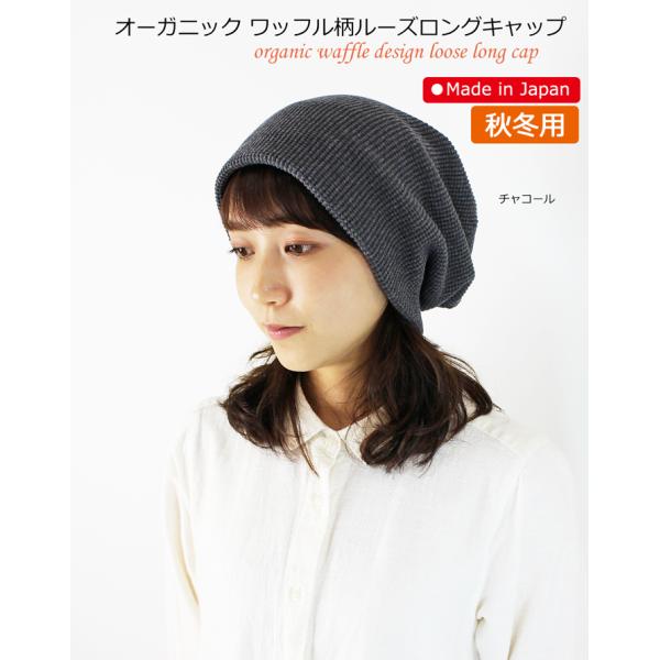 医療用帽子 秋冬用 オーガニック ワッフル柄ルーズロングキャップ 日本製 メンズ レディース 抗がん剤副作用 脱毛 手術後用ケア帽子 薄毛 白髪隠し