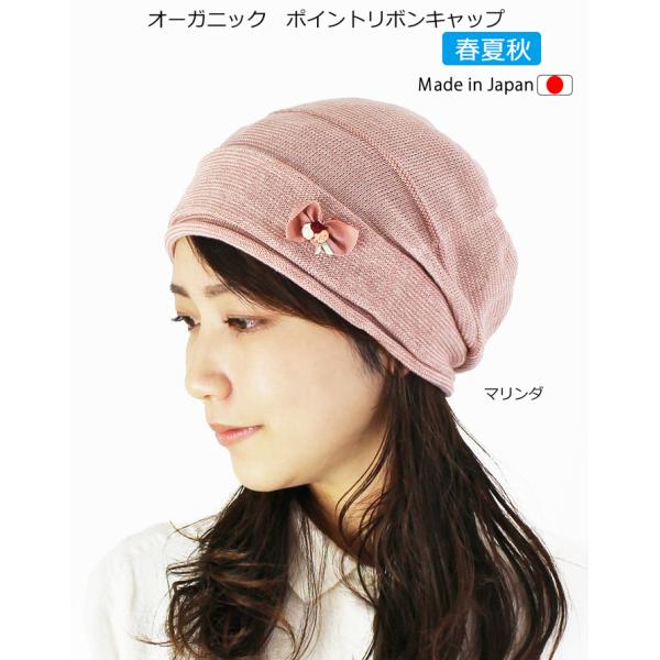【新発売】医療用帽子 春夏秋用 オーガニック ポイントリボンキャップ 無縫製 日本製 レディース 抗がん剤 脱毛 手術後用ケア帽子 薄毛隠し 寝ぐせ隠し