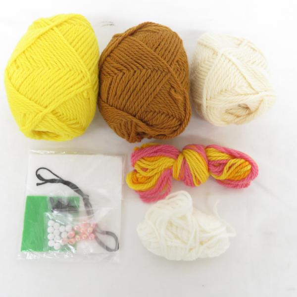 材料セットの袋が一部開封されていますが、毛糸などは未使用です。