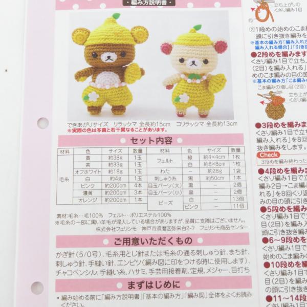 開封品 フェリシモ クチュリエ×リラックマ ほっこり変身あみぐるみの会 リフレッシュレモン(リラックマ&コリラックマ)