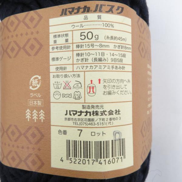 毛糸 毛糸 ハマナカ BOSK バスク ウール100% 7番色 5玉セット 1玉50g玉巻45m 日本製 未使用品