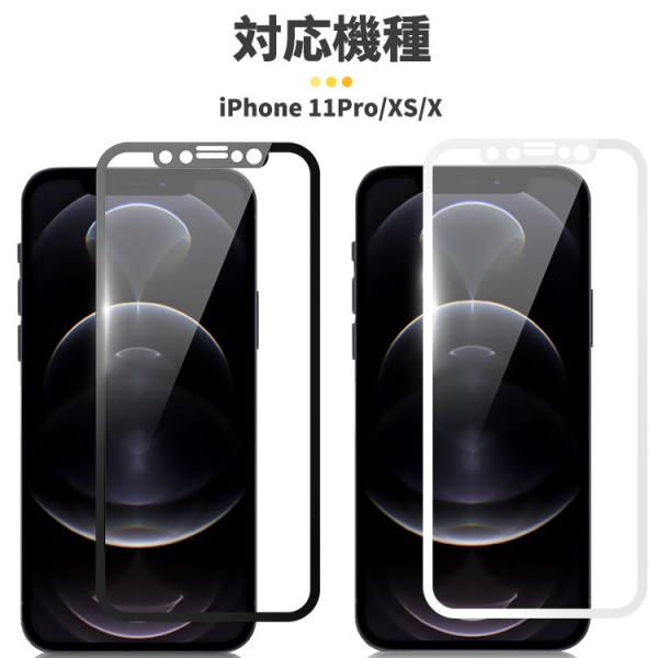 iPhone 11Pro XS X ガラスフィルム 全面保護フィルム 液晶保護フィルム アイフォン 保護シール 強硬度 ブラック ホワイトソフトフレーム 保護フィルムのColorful