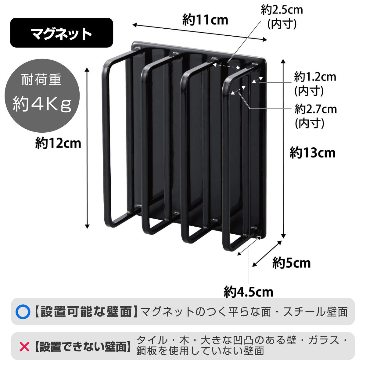 材質/本体:スチール(ユニクロメッキ+粉体塗装) マグネット 滑り止め:シリコーン