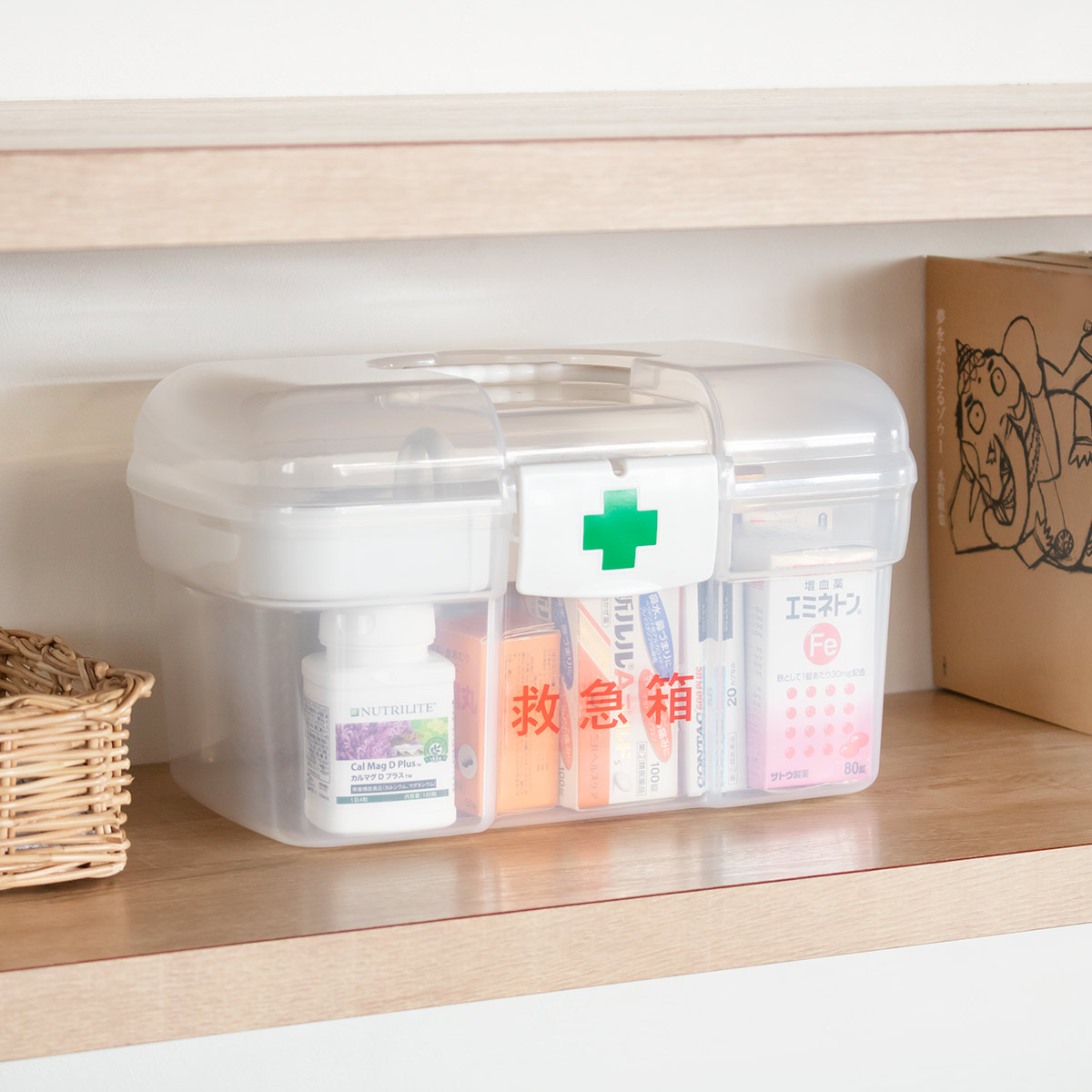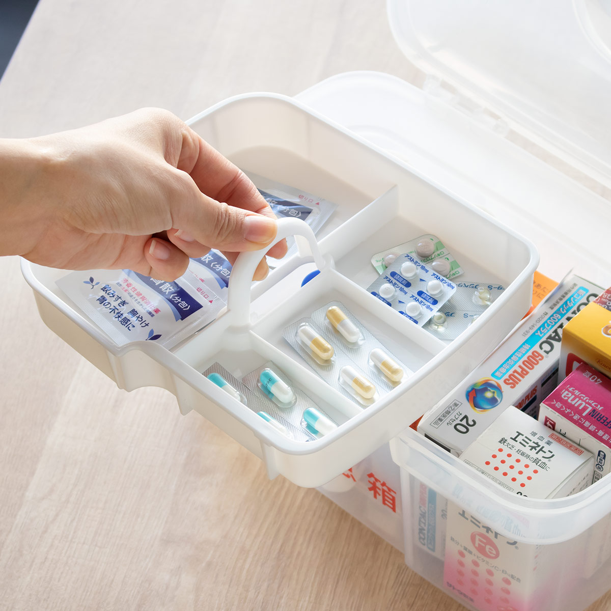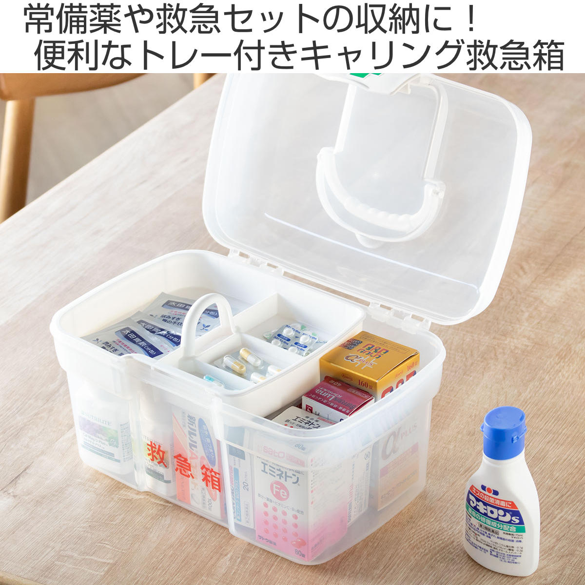 救急箱 キャリング救急箱 薬ケース 持ち手付き トレー付き 大容量 ( 日本製 薬箱 応急処置 応急手当用品 防災グッズ プラスチック製 )