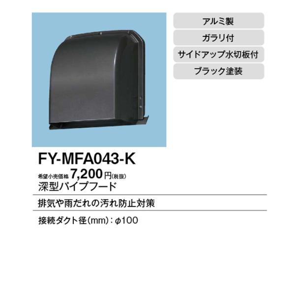 【FY-MFA043-K】パナソニック パイプフード ・アルミ製・ガラリ付 システム換気部材 パイプフード 深形 アルミ製 ガラリ付 直径100用 色:ブラック panasonic