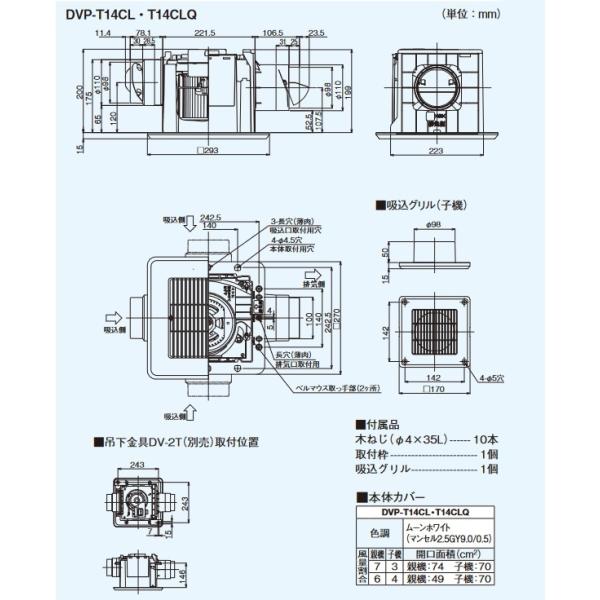 東芝 DVP-T14CL ダクト用換気扇 2部屋用 低騒音形 スタンダード格子 サニタリー用 トイレ 洗面所 浴室用