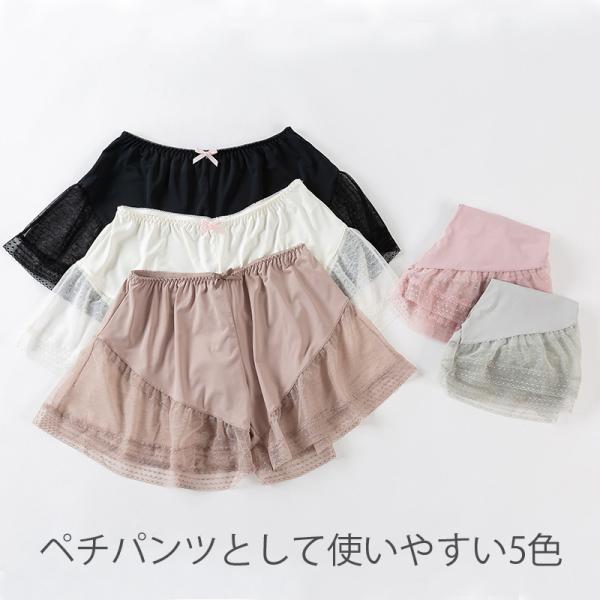 ペチパンツ レース リブ インナーパンツ ペチコート 冷感素材 透け 防止 ショート キュロット レディース