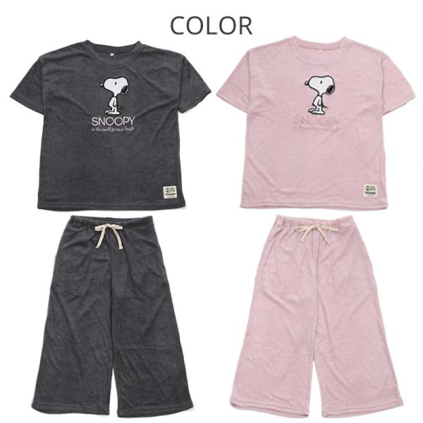 【SNOOPY】スヌーピー ルームウェア パイル生地 上下セット レディース 春 夏 パジャマ 可愛い ショートパンツ 七分丈