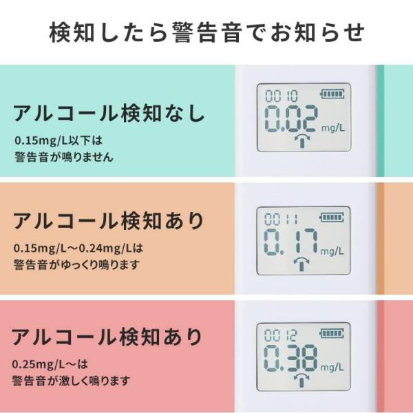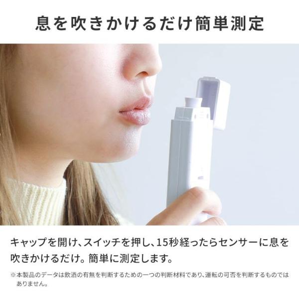 注意事項:道路交通法第65条第1項にて「何人も、酒気を帯びて車両等を運転してはならない」と遵守事項が定められております。本製品のデータは飲酒の有無を判断するための一つの判断材料であり、運転の可否を判断するものではありません。測定結果に基づいて、車両の運転や機器操作などの可否判断に対して、本製品の製造者、および販売に携わる関係者は一切責任を負いません。車両の運転や機械操作の最中に測定を行わないでください。