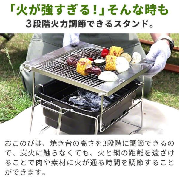 火力調整は3段階!軽々運べるコンパクトバーベキュー おこのび