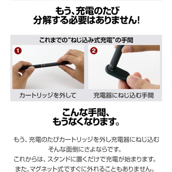 シガリアを置くだけで充電できる充電スタンドが登場。もう、カートリッジを外して充電器にねじ込む必要はありません。