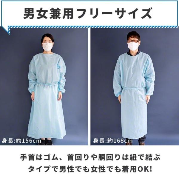 飛沫、唾液その他の保護に。男女兼用 防護服(アイソレーションガウン)