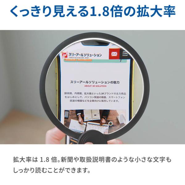 小さな文字もくっきり見える1.8倍の拡大率