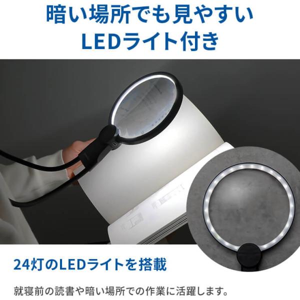 拡大鏡 ルーペ 首掛けルーペ 首掛け スマホ 首 携帯用 両手が使える メガネ 手持ち 卓上型 スタンド 読書用 携帯 LED 充電式 おしゃれ smolia