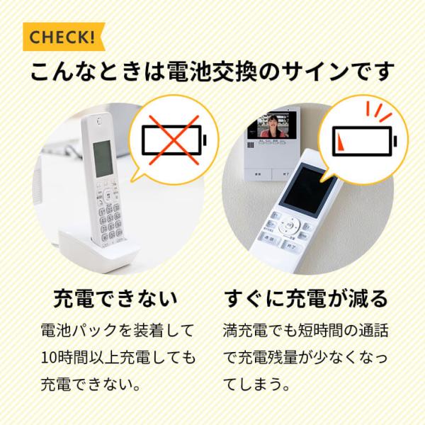 ・家庭用電話機、コードレス電話子機、ワイヤレスモニター子機のバッテリー交換に