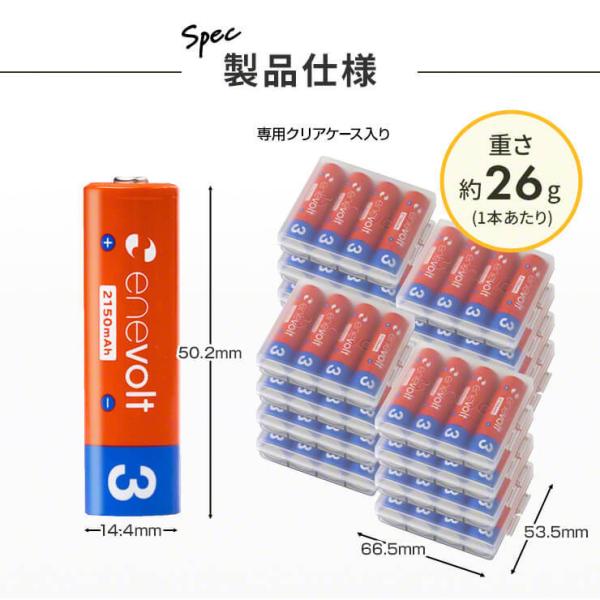 充電池 単3 単三 セット 64本 エネボルト 充電式電池 enevolt 2150mAh ニッケル水素電池 単3電池 単三電池 カラー 60本以上 防災