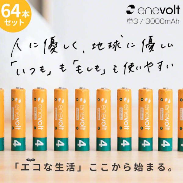 シリーズ累計販売数520万本の充電池エネボルトの単4電池、64本セット!