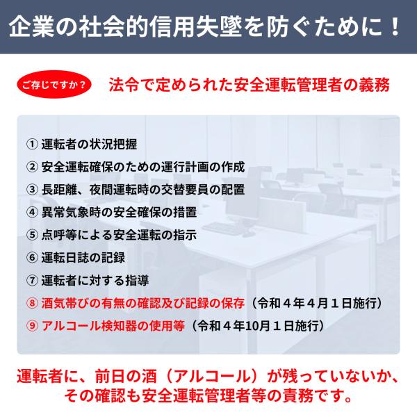 国家公安委員会が定めるアルコール検知器としてご使用いただけます。