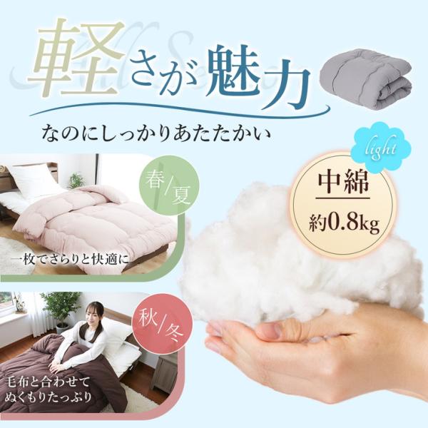 掛け布団 シングル S 抗菌 防臭 防ダニ加工 ピーチスキン 軽量 軽い 洗濯可能 洗える オールシーズン ループ付き 寝具 来客用 新生活 無地 シンプル