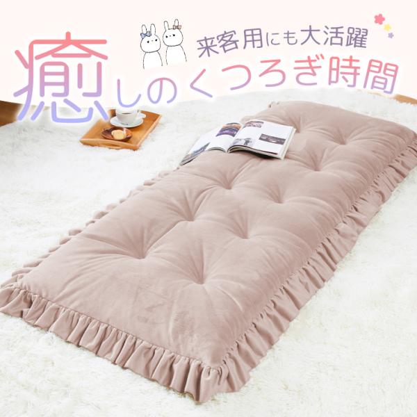 ごろ寝マット お昼寝マット マット 160cm 折りたたみ 大人 かわいい おしゃれ フランネル 洗える 長座布団 クッション フリル ボタン ふわふわ