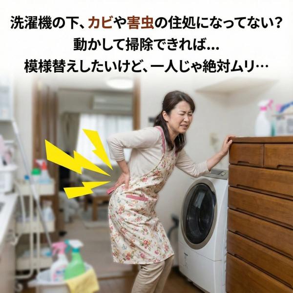 家具・家電移動用キャスター台です。大型の家具や家電も、このキャスター台を使えば一人で簡単に移動できます。